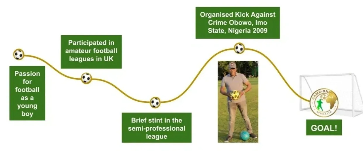 In 2009, it was clear that youth idleness, lack of social activities, and the necessity to make a living by all means were some of the major causes of crime in local communities, both in Nigeria and the United Kingdom. In response to the explosion of crime and kidnapping in Nigeria, I developed the initiative of Kick Against Crime.